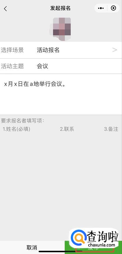 根据页面提示填好活动内容,然后点击“发布报名活动”,这里可以发给单个好友,也可以发到微信群里。