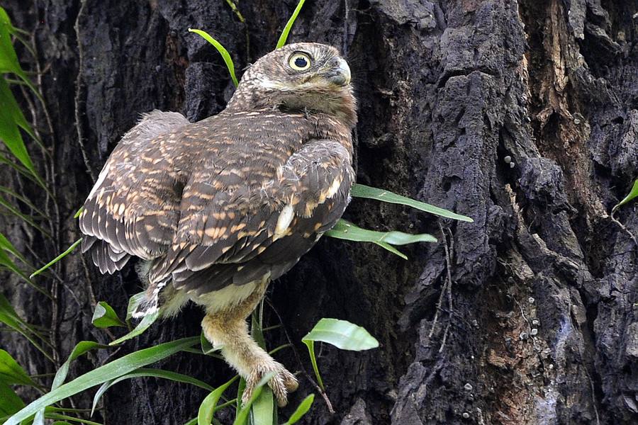 猫头鹰的瞳孔又大又圆,但它白天看不清东西,只能在树枝上或树洞里休息,到了夜间就出来活动。它的视力特别敏锐,即使在极微弱的光线下,也能看清东西。它的耳孔很大,听觉灵敏,能在丛林或田野里听到老鼠走路的声音,从老鼠奔跑的“沙沙”声中知道老鼠奔跑的方向。它周身的羽毛稠密而松软,能毫无声息在寂静的夜空中飞行。猫头鹰在夜间捕食老鼠有惊人的“特技”,在距离几十米以外的地方,也能准确无误地捕猎鼠类。
