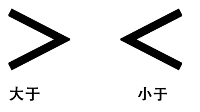 在区别时,直接通过口诀“开口朝哪哪就大,尖角朝哪哪就小”可以直接进行判断。大于号的开口方向是朝左的,当前方数字大于后方数字,书写为“>”即可,反之就是小于号。