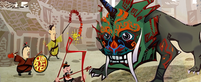 它窜到另一个村庄,又迎头望到了一家门口晒着件大红衣裳,它不知其为何物,吓得赶紧掉头逃跑。后来它又来到了一个村庄,朝一户人家门里一瞧,只见里面灯火辉煌,刺得它头昏眼花,只好又夹着尾巴溜了。人们由此摸准了"年"有怕响,怕红,怕光的弱点,便想到许多抵御它的方法,于是逐渐演化成今天过年的风俗。