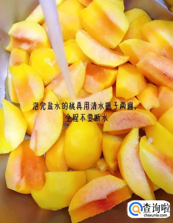 然后把浸泡好的黄桃用清水冲洗干净,如下图所示。