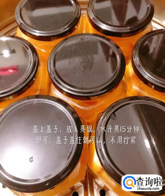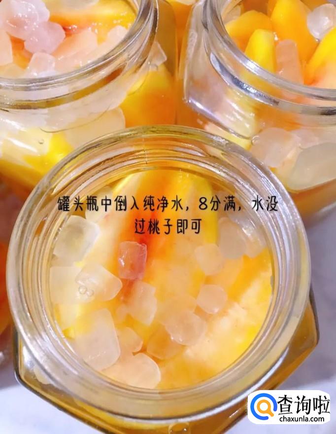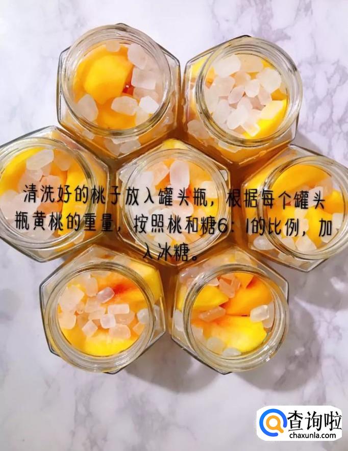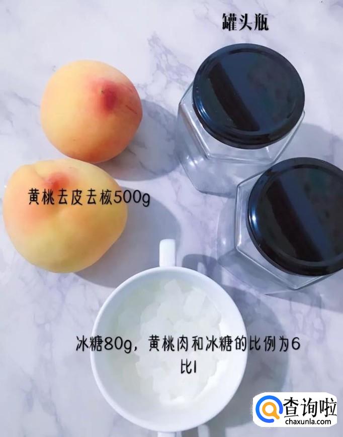 材料:黄桃500克,冰糖80克,罐头瓶适量。