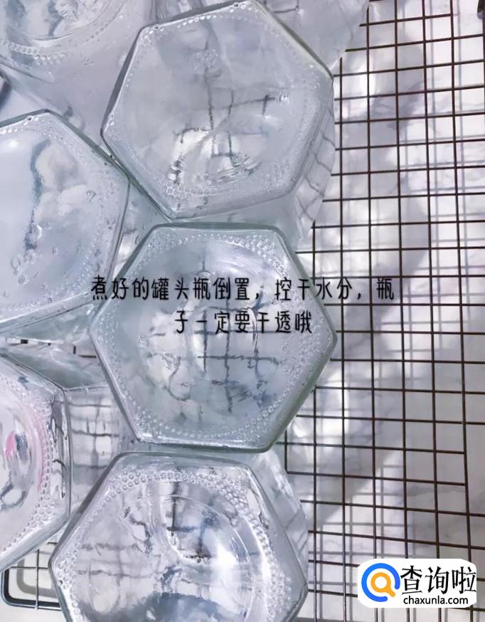 首先将罐头瓶清洗干净,上锅蒸15分钟,放在通风阴凉的地方控干水分,如下图所示。
