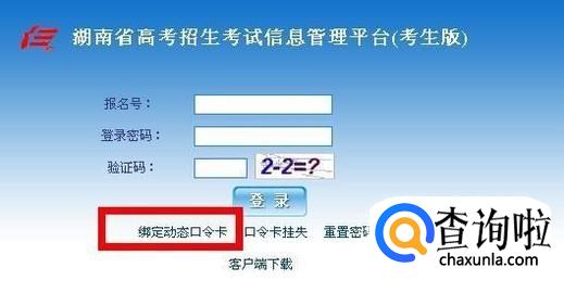 首先输入口令卡上的网址或者可以直接输入“XX高考招生考试信息管理平台(考生版)”,然后打开网页,在下方就有绑定口令卡的字样。