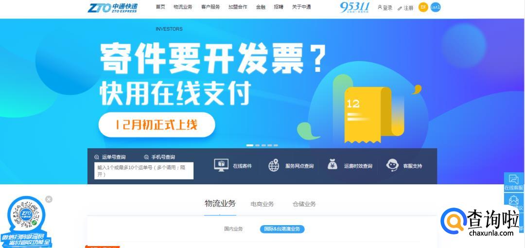 打开中通快递官网,在右下方的运单号查询窗口输入运单号,单击“查找”按钮后,即可查询到物流进度。