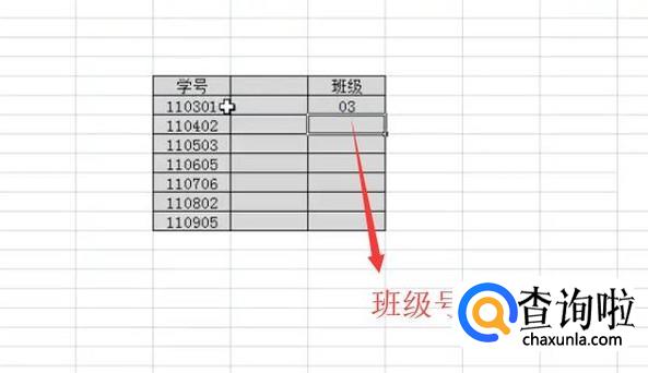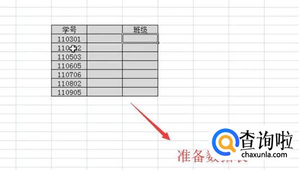 首先在Excel中准备如下图所示的数据列,注意第3和第四个数字代表的是班级,如下图所示