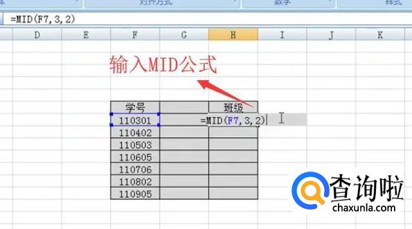 接下来我们在文本后面输入公式MID,从第3个数字开始截取文本,如下图所示