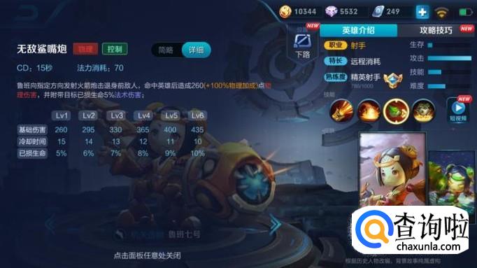 首先来看一下小短腿鲁班的特点,作为王者峡谷的一名射手,它具有射手的一切特点,持续输出高,血量低,容易被对面的刺客切死,而且鲁班的扫射射程是很远的,因此开团的时候鲁班一定要站在合适的位置,避免被刺客逮住。