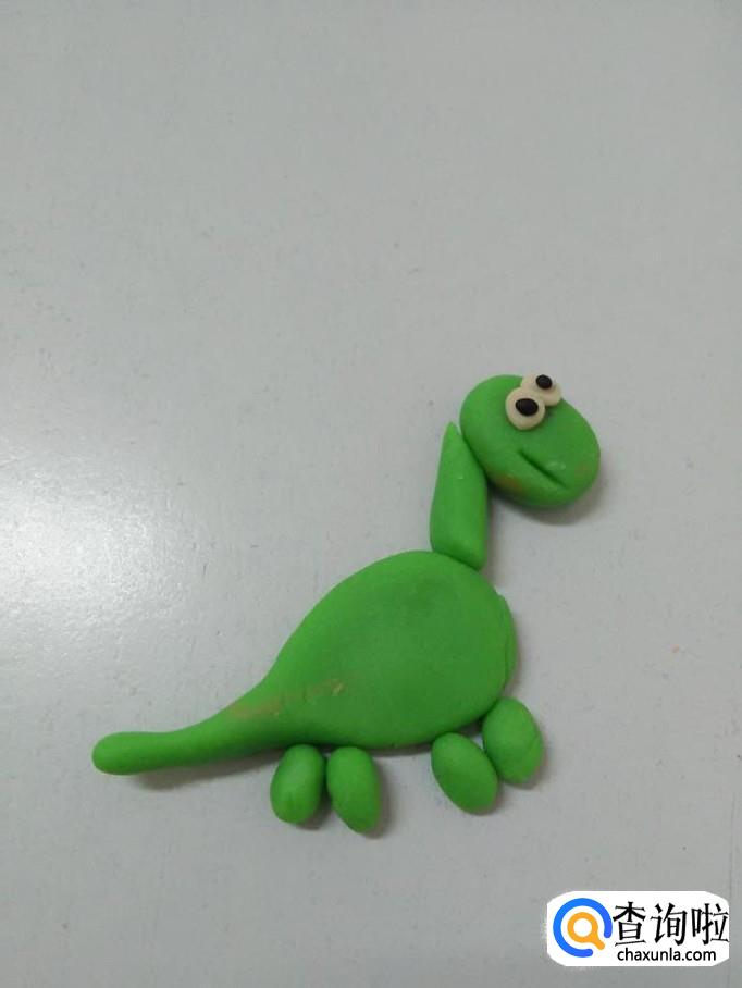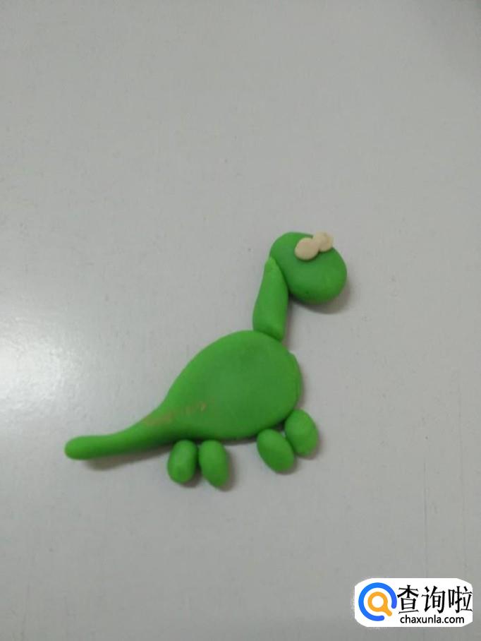最后,用桔色团几个小球,粘在脖子和身体上方,当作背部的隆起,恐龙就做完了。