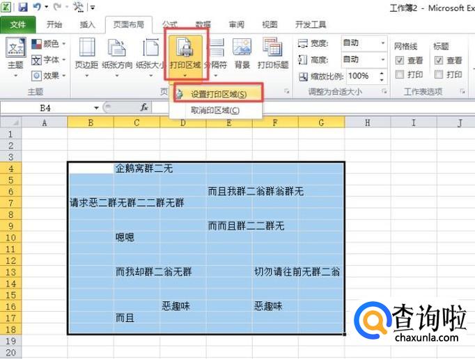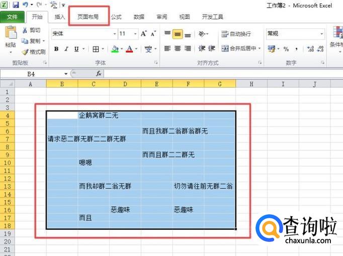 我们选中需要打印的区域,之后点击页面布局;