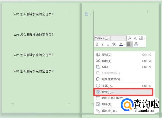 如果要把WPS中多余的空白页给删除,第一种方法,可以直接按住鼠标左键不放开,选中空白页,然后按键盘上的delete键进行删除;第二种方法,也是先选中空白页,然后右击鼠标,点击段落,然后在行距选项中选择固定值,接着把设置值设置为1磅,再点击确定即可删除空白页。