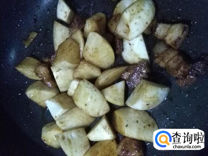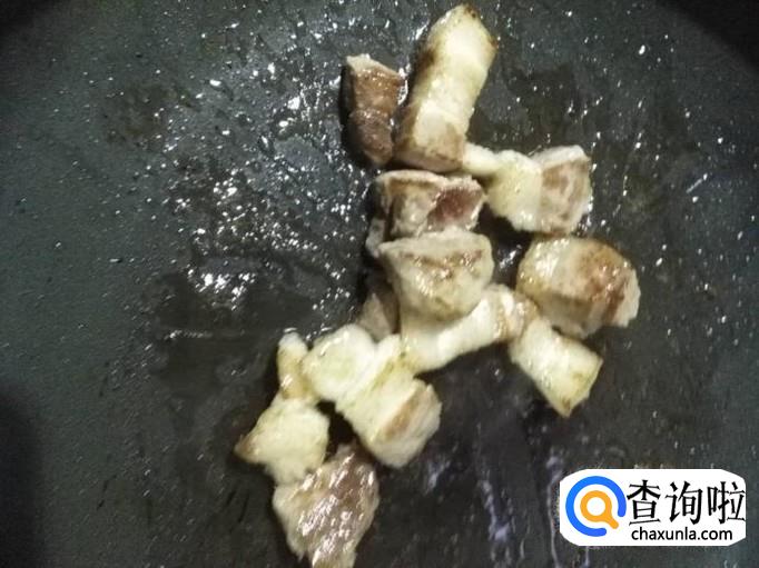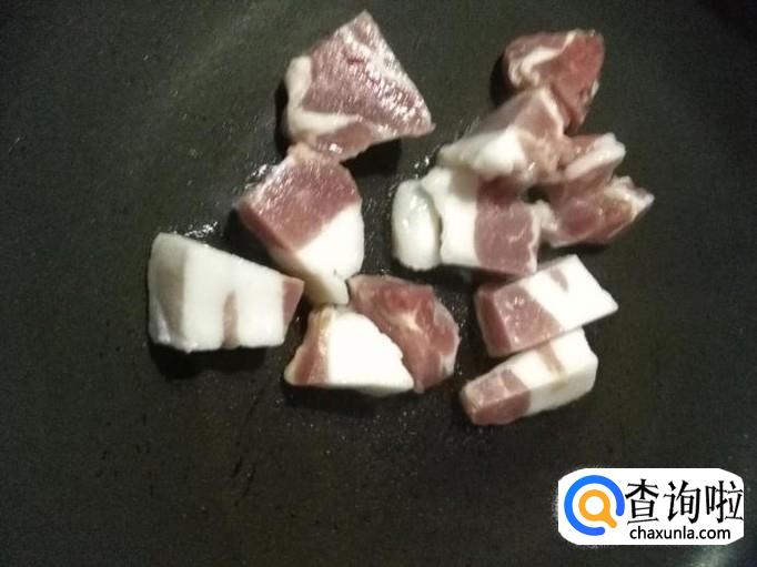 锅烧热,将猪肉放入锅中煸炒出油脂