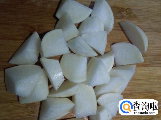 将猪肉和萝卜洗干净,分别切成块