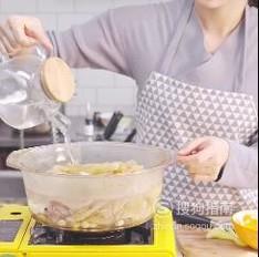放入姜片,花胶,螺片,加入适量清水,水开后飞水去腥。