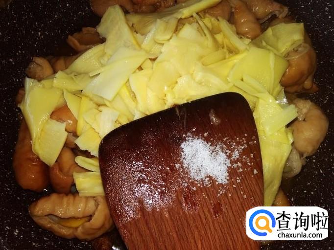 打开盖子,下酸笋进去加适量的盐。