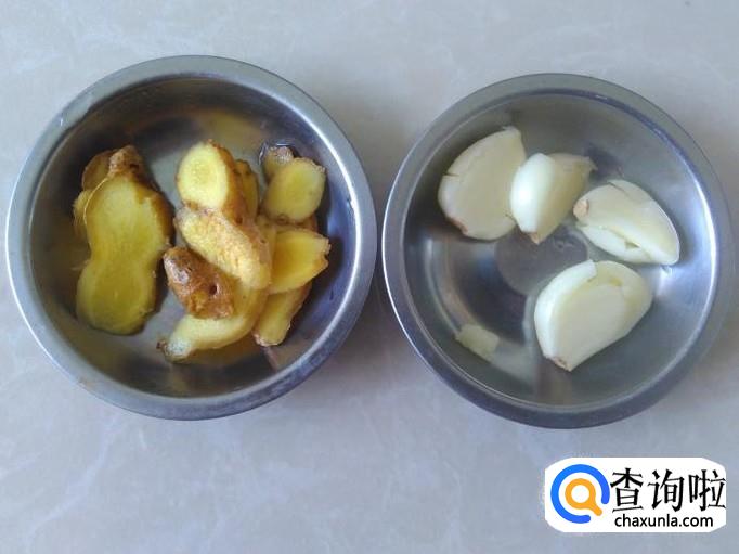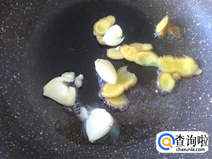开火下油,放姜片、蒜米进去爆香。