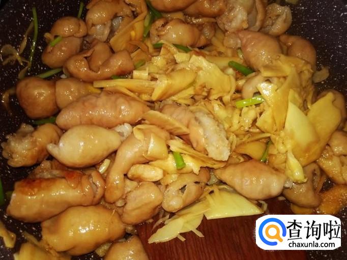 打开盖子下香葱,几粒味精翻炒均匀,熄火。非常美味的酸笋炒大肠就做好了。
