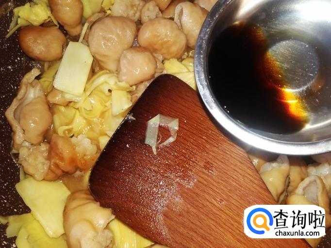1勺生抽翻炒均匀,盖上盖子焗2分钟左右。