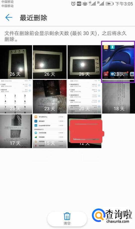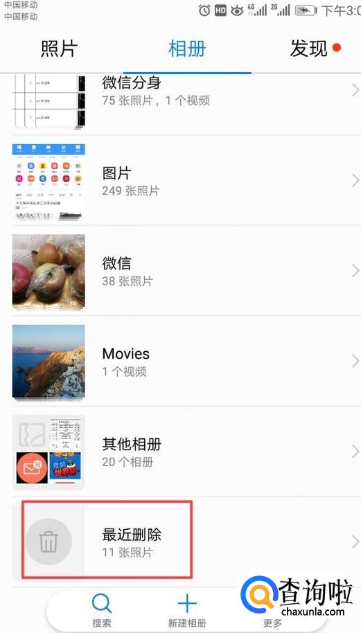 弹出的界面,我们进行下拉,然后找到最近删除,我们点击它;