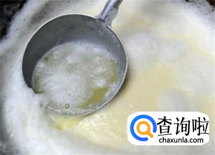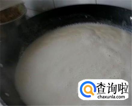 把豆浆放进不粘锅里烧,要不断搅拌,在开锅的时候关小火快速搅拌防止溢出来,然后再开大火,这样反反复复最少五分钟关火。