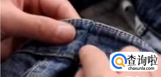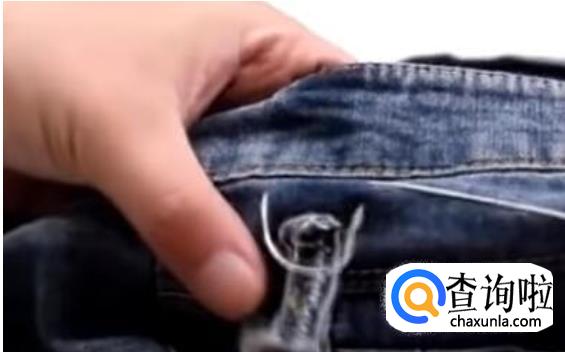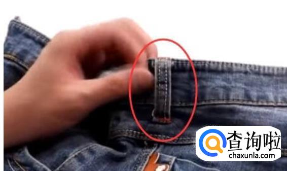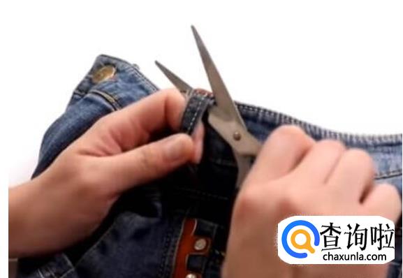 牛仔裤上都有很多这种穿皮带的小带子,我们从中间剪断一根。
