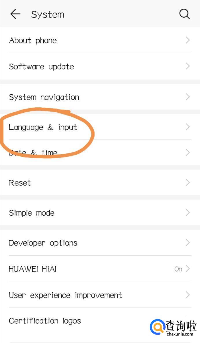 进入language & input(语言与输入法)界面后,可以看到有一个“language & input”选项的选项,也就是“语言”选项,点击进入