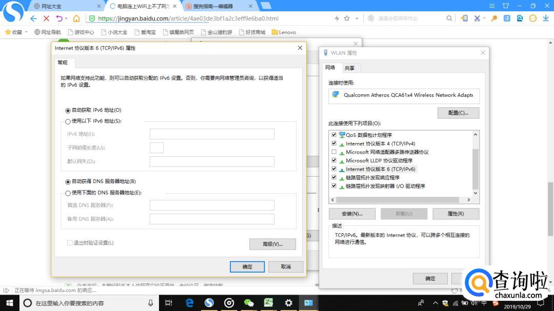 返回WLAN属性对话框,选择“Internet协议版本6(TCP/IPv6)”。