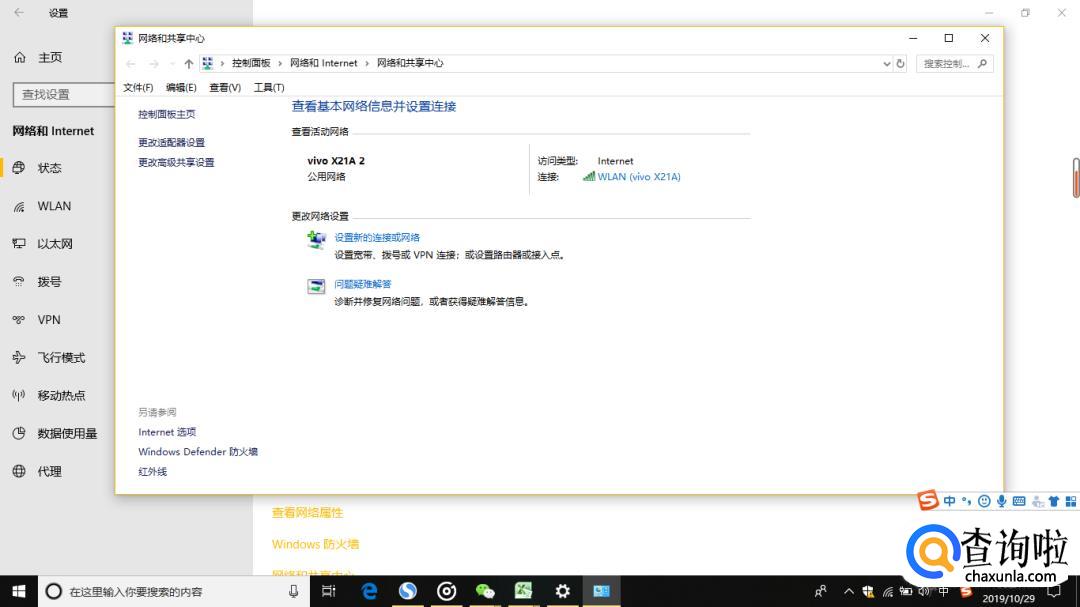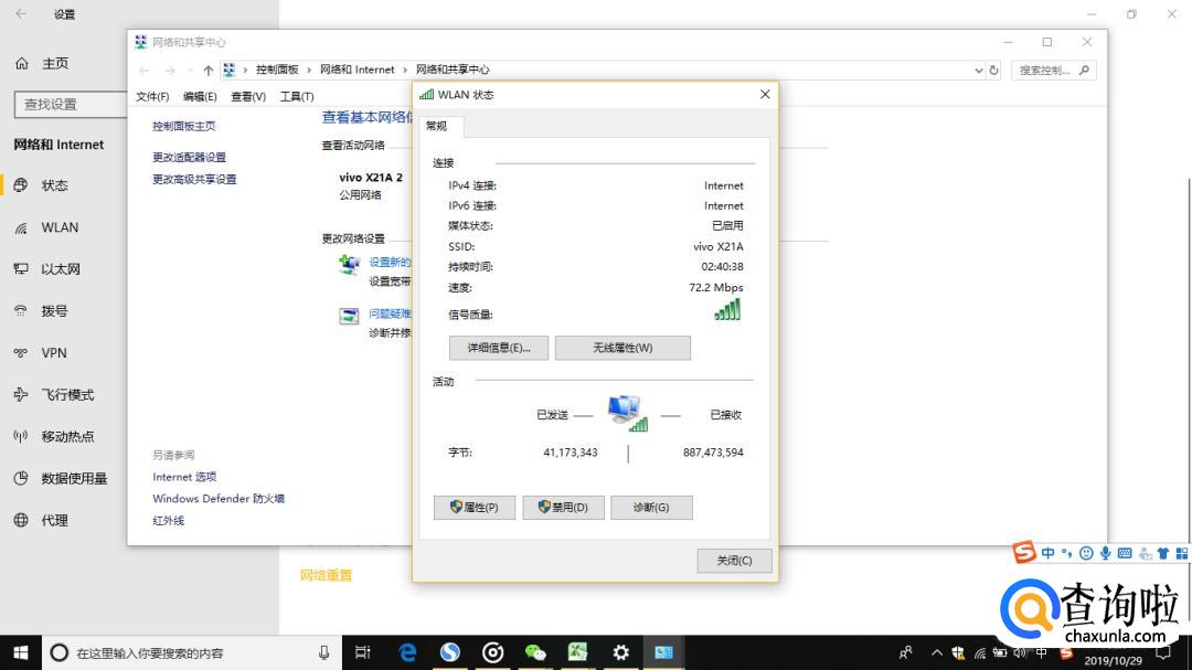 查看活动网络下的连接WLAN名称。