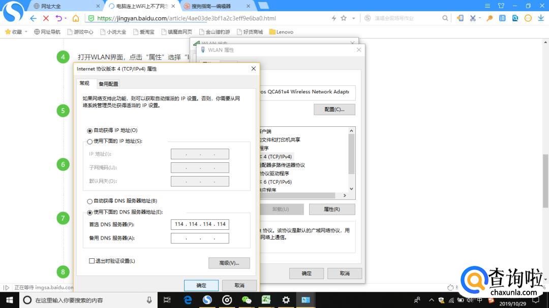 点击“自动获取IP地址”和下方的“自动获得DNS服务器地址”--“确定”。
