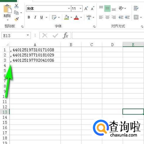 我们把光标定位在身份证号前面这里,再输入逗号,即可把身份证号完整显示出来。