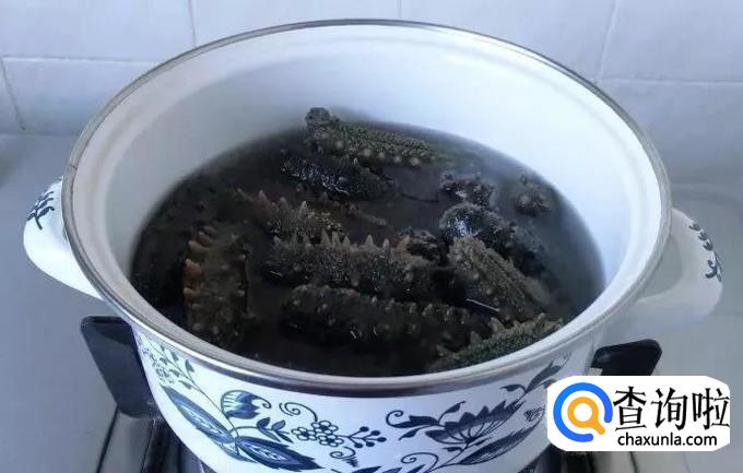 把洗净的海参加入适量纯净水,让入锅中煮大火煮开,然后改小火再煮半个小时左右,然后再继续泡。
