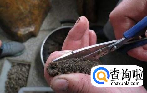 把稍微泡软的海参,用剪刀从中间剪开,进行清洗海参,注意一定把海参内部清洗干净,以免有泥沙。