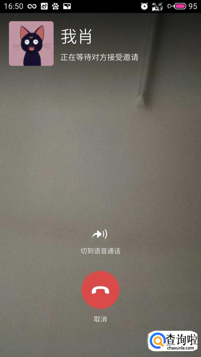 点击标志后选择视频通话,就会出现下面的界面,等对方接通,就可以进行视频通话了。