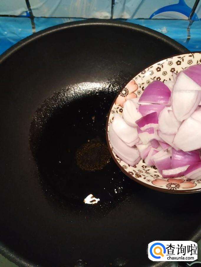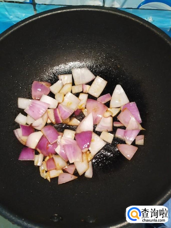 炒锅中放入适量油,油温五成热,加入适量白砂糖,炒出糖色,然后将洋葱倒入锅中,翻炒均匀。