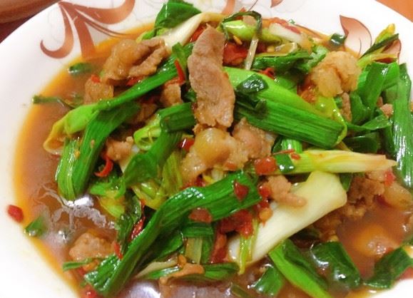 这个食材就是大蒜叶,也被叫做青蒜,就是大蒜青绿色的幼苗,价格也非常便宜,大蒜叶中含有辣味素,食用后可以促进肠胃蠕动,加速新陈代谢,排出宿便,有助排出体内毒素和垃圾,减少脂肪堆积。另外,由于亚硝酸胺是产生癌细胞的重要成分,而食用大蒜叶有助体内抑制亚硝酸胺的生成,从而起到一定的抗癌作用,同时还能降血压,接下来为大家介绍一道大蒜叶炒肉,做法简单,超级下饭。