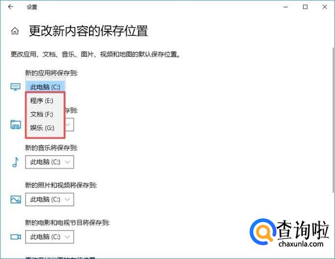 然后我们点击更改新内容的保存位置;