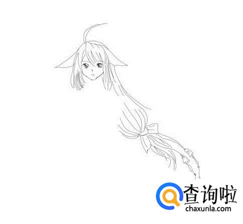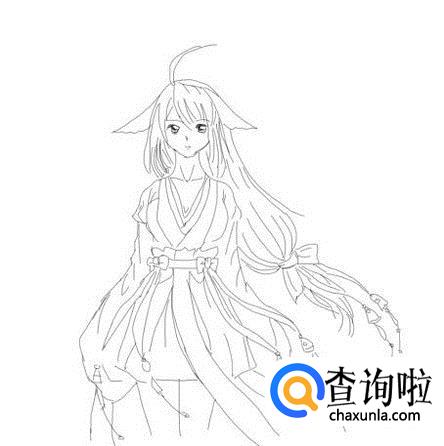 最后再在涂山红红肩膀的基础上再画出涂山红红的腰部,然后再画出涂山红红的裙子,并在裙子下面画出涂山红红的两条腿,这样简笔画涂山红红就画好了,如图所示: