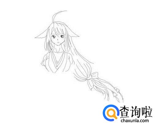 首先我们画出涂山红红的头发造型,然后再画出涂山红红的大辫子,如图所示: