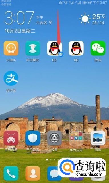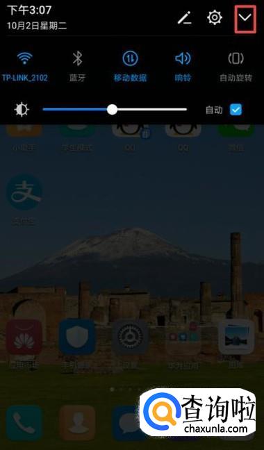 首先,我们打开我们的手机,然后我们在手机桌面的上方下滑一下,如图所示;