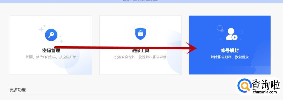 接下来将直接进入QQ安全中心界面,在界面中用鼠标点击“账号解封”选项,进入下一个界面。