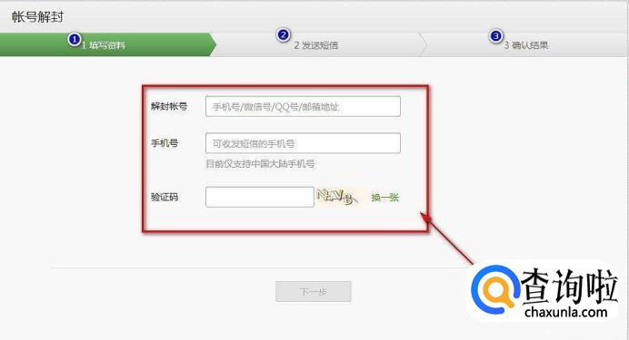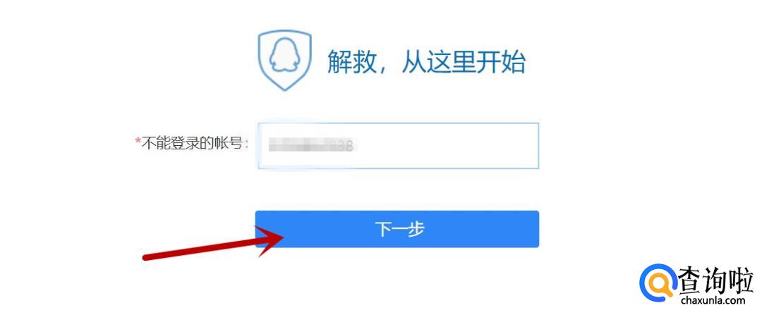 进入界面后,在输入栏输入你被封的QQ号,用鼠标点击“下一步”。