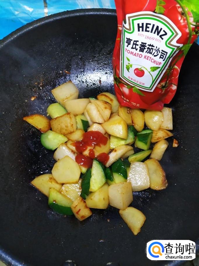 加入适量番茄酱提鲜,然后再加入适量生抽增量色泽。
