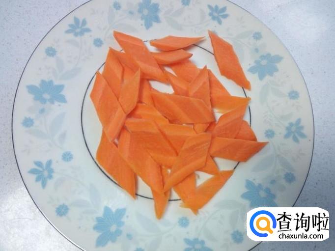 胡萝卜去皮,用水清洗干净,控干水分,切成片。切好葱,姜,备用。