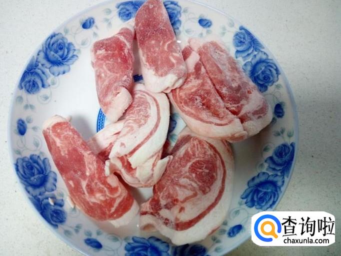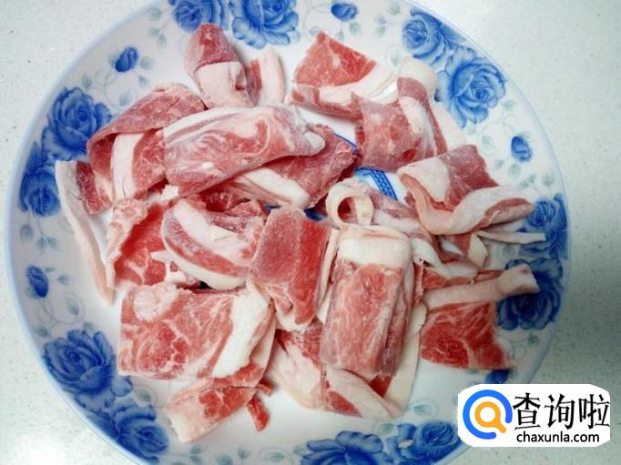 冰冻的羊肉卷提前拿到常温处,稍化一下(不要拿出来太早,避免化出水),比较大的羊肉卷用刀切成小一些的片。