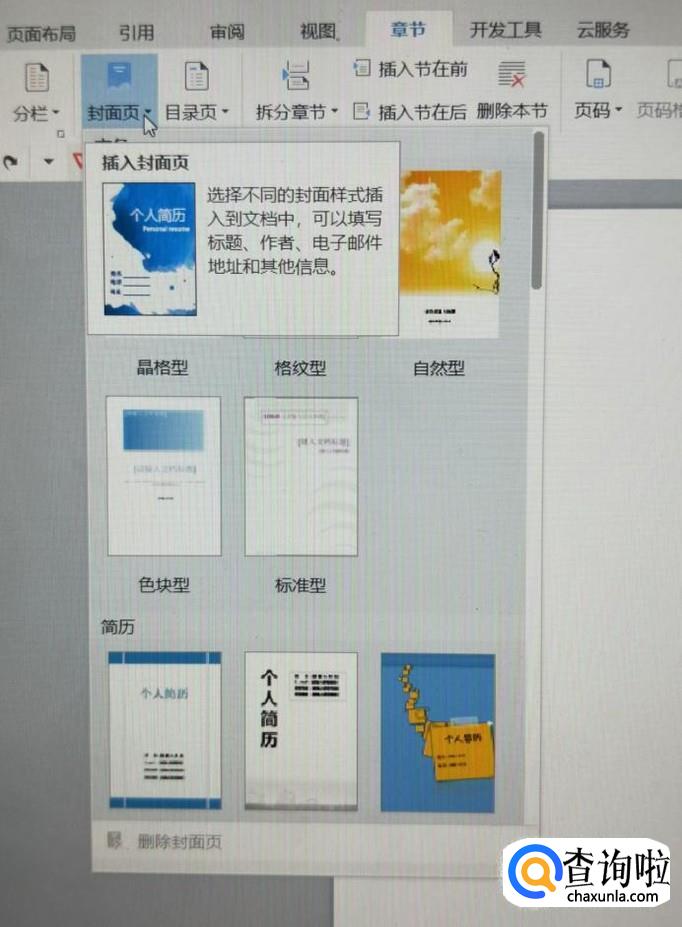 在封面页中,有许多封面旳模板和类型,选择需要的即可。