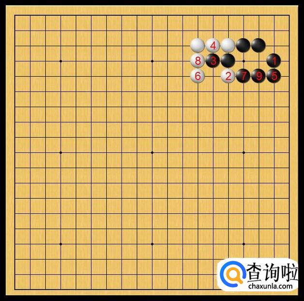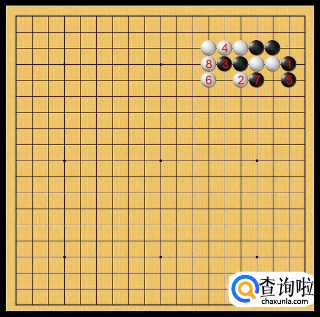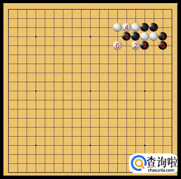 由于黑棋的先手,黑棋占优,黑棋立刻在黑7处落子枷吃中腹的白二子。白二子插翅也难飞了。如图所示。