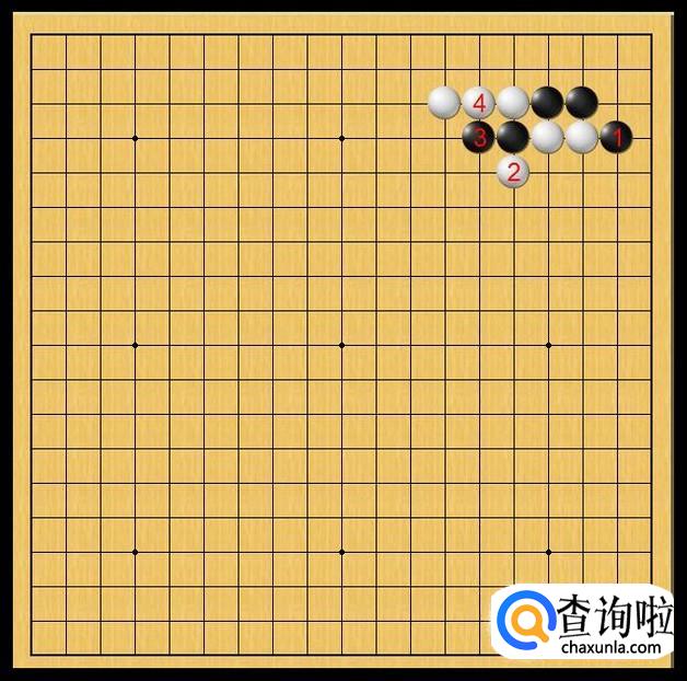 白棋在白4处粘,白4的粘紧贴着中腹的黑子,对中腹的黑子进行压迫式的防守。如图所示。