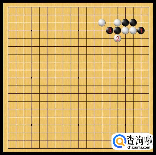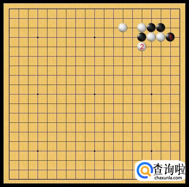 黑方先行,黑棋在黑1处挡,黑1的挡确保了黑棋对右上角的防守,有效的防止了白二子可能采取的立,如果让白二子立下后,黑棋的右上角将会变得非常危险。如图所示。