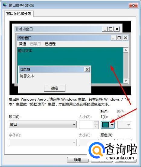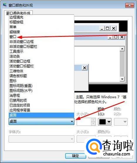 选择好窗口后我们在点击旁边的颜色的三角符号,展开后我们选择相应的颜色后点击确定就设置好了。