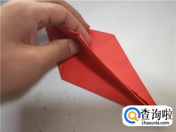 之后我们将上面的一个三角,折出千纸鹤的头部,如图所示。